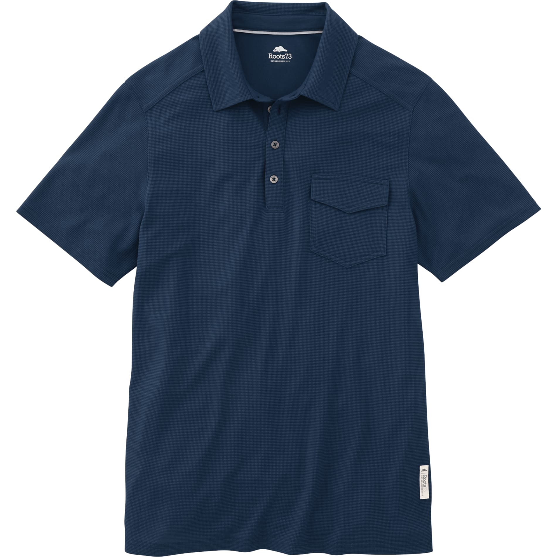 Roots73™ branding is proudly displayed on the left hip and rear right shoulder. Known for its quality and durability, Roots73™ guarantees that this polo will withstand the test of time.
